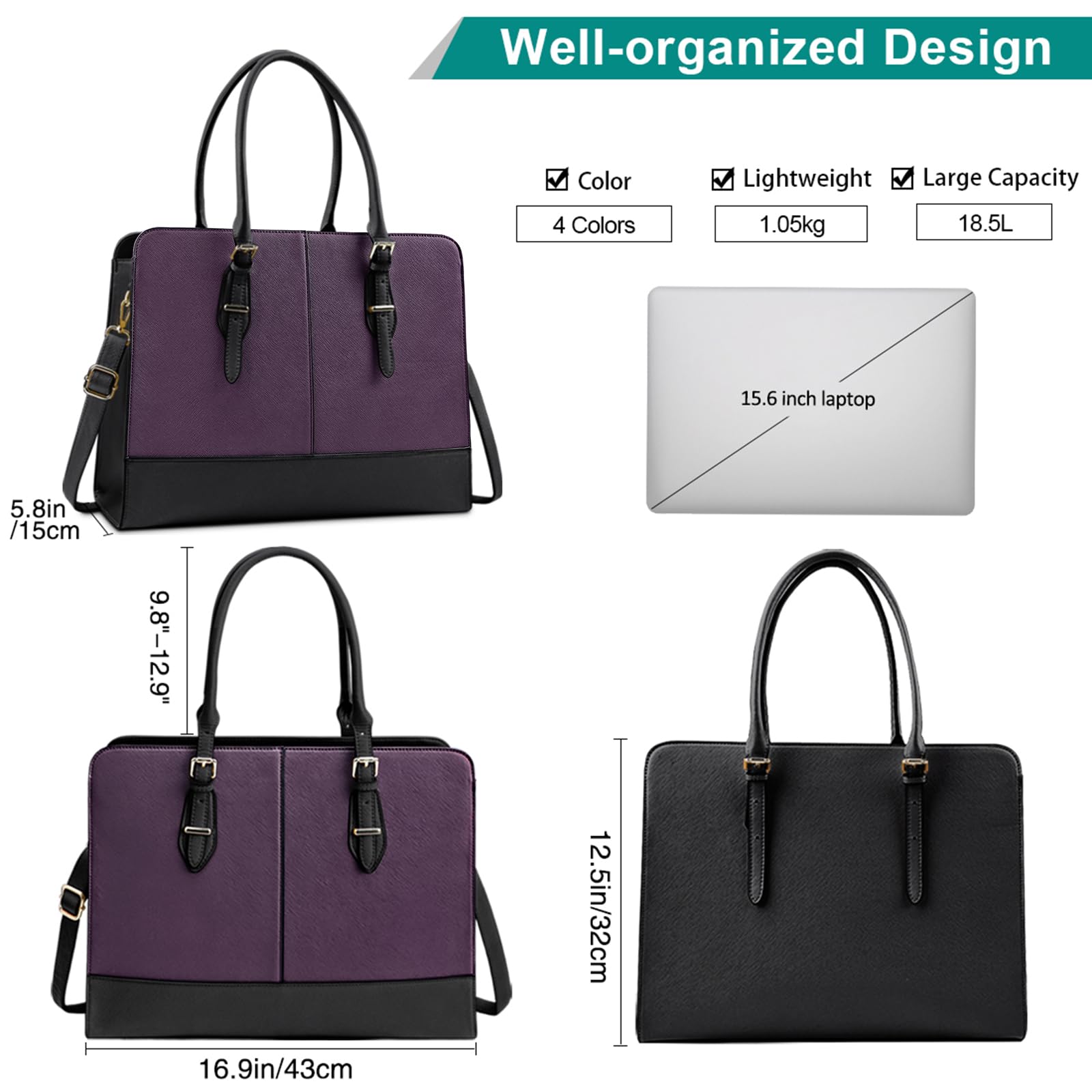 15.6-inch Laptop Bag with Luggage Strap, Women's Briefcase, Separate Leather, Shoulder Bag, Crossbody Bag